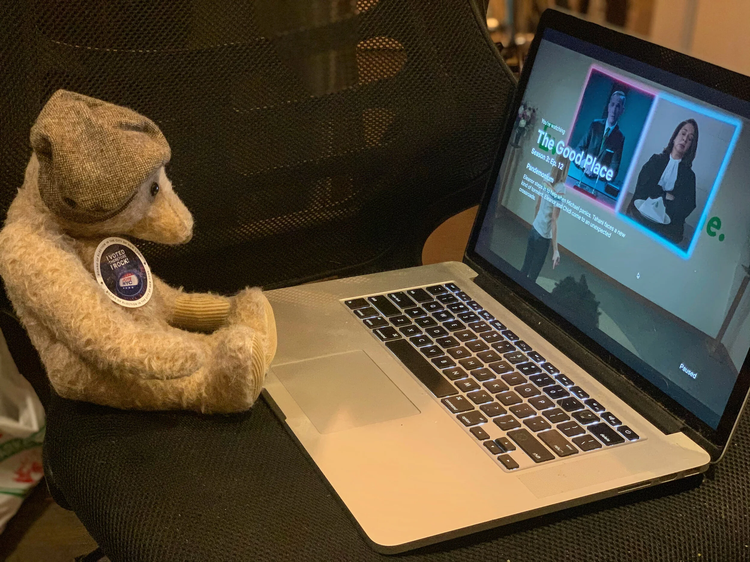 We’ll be out and about NYC tomorrow, so if you want some support while you’re standing in line we’ve got a Scottish bear (who's so excited about voting he's refused to take his sticker off), a long bearded tall guy, a witty Israeli, and a guitar to keep you company. Socially distant and masked, of course.